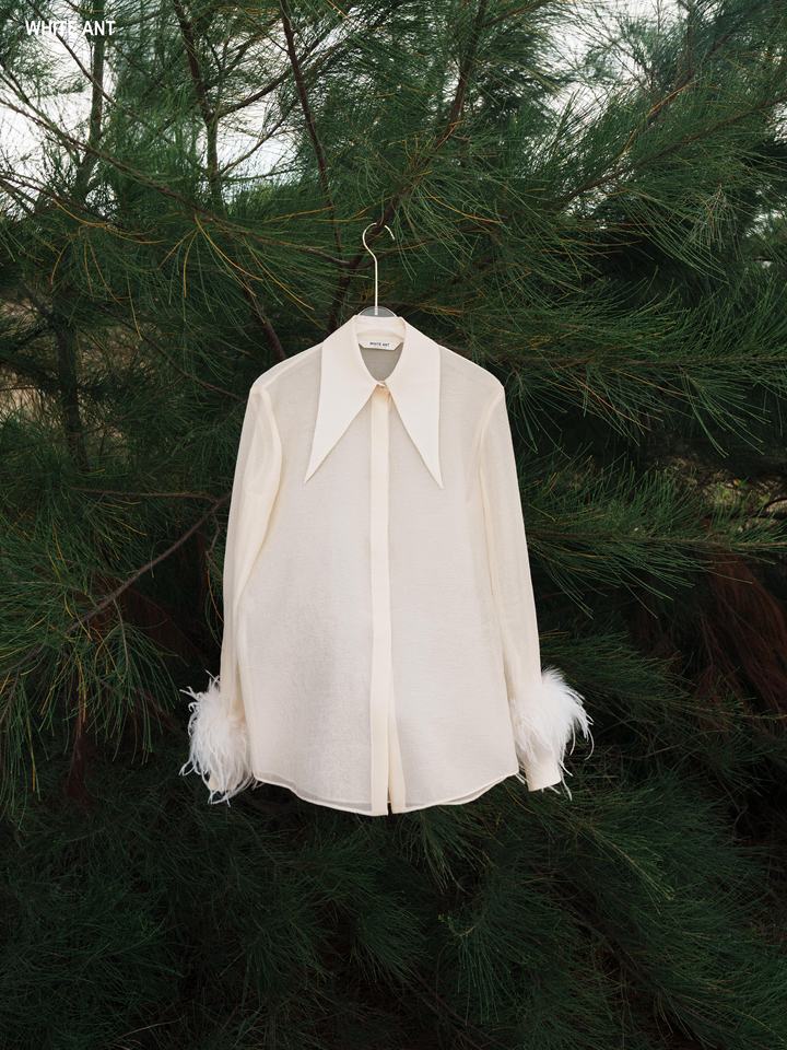 เสื้อเบลาส์แขนยาวสำหรับผู้หญิงเสื้อเบลาส์แขนยาวผ้าไตรอะซิเตทแบรนด์เวียดนาม
