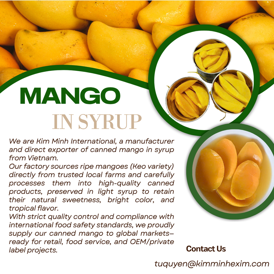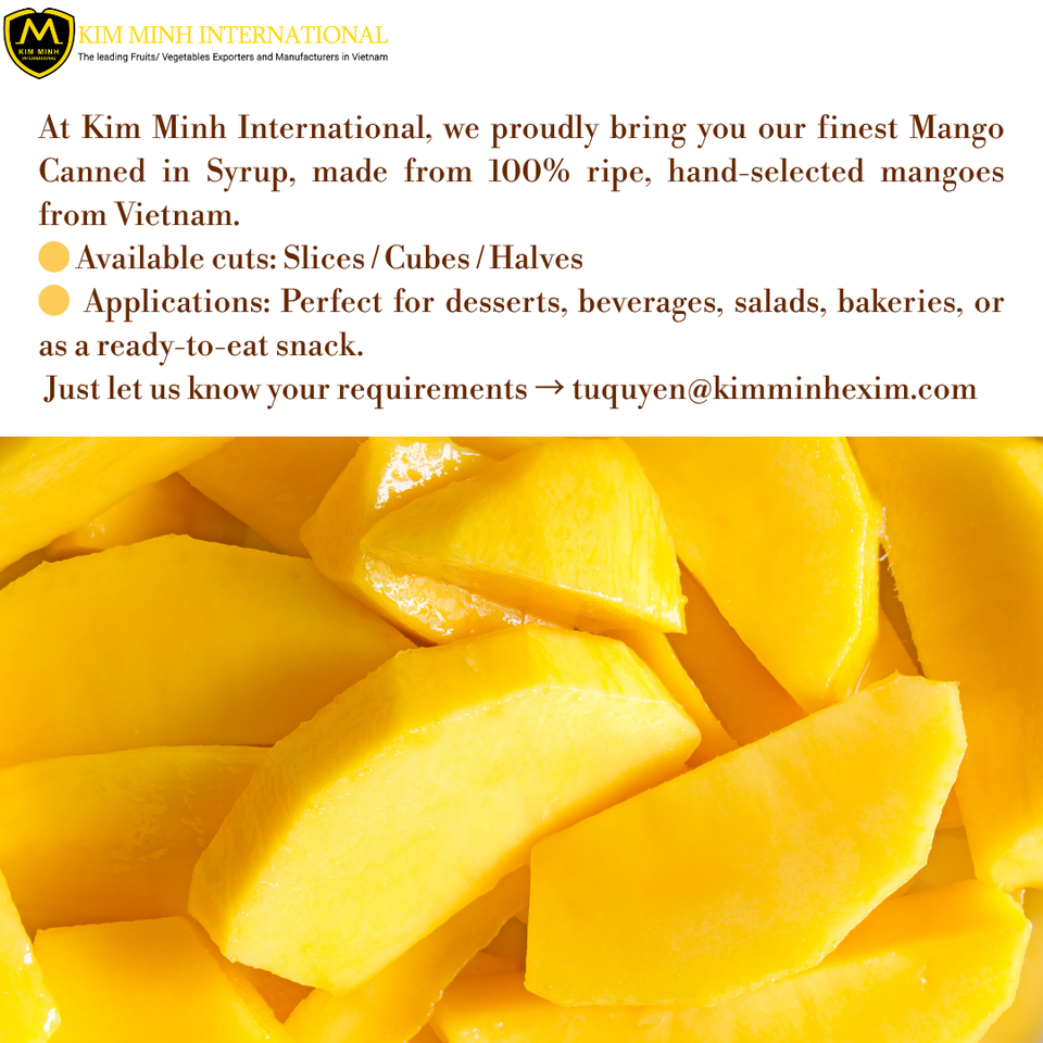 เวียดนามส่งออกคุณภาพมะม่วงทองในที่มีน้ำหนักเบาหรือน้ำเชื่อมผลไม้กระป๋องเขตร้อนจากเวียดนาม