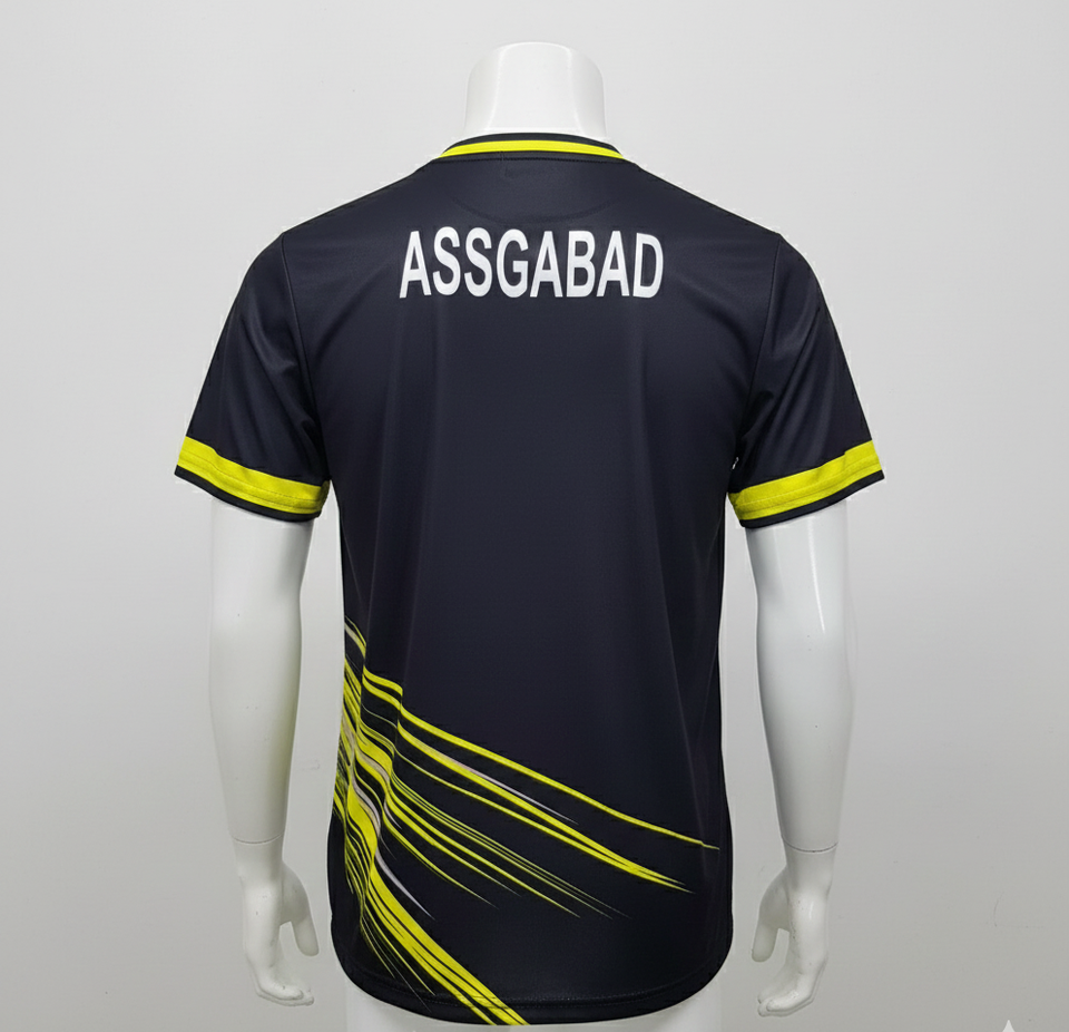ออกแบบ:สีเหลือง-คอลูกเรือตัด, ฐานสีดำ, ลายเส้นทแยงมุมนีออน