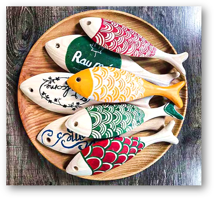 ปลาไม้แขวนจากโรงงานเวียดนาม ผลิตภัณฑ์ไม้ทำมือ ปลาไม้แกะสลักด้วยมือ