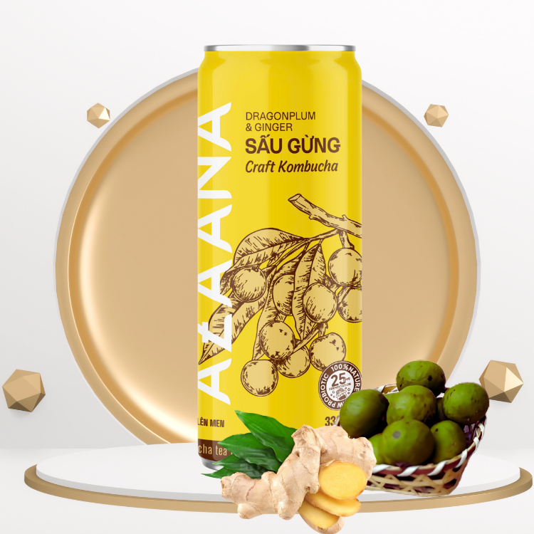 ผลไม้เวียดนามและน้ำขิงคอมบูชะเข้มข้นมอบรสชาติที่สดชื่นในทุกจิบ