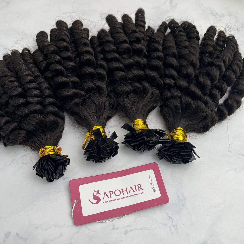 วิกต่อผมชาวเวียดนาม100% ผมธรรมชาติแบบหยิกปลายแบนสีดำสุดหรูเกรด +++ 8 "-30" สองชั้น