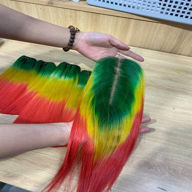 วิกผมมนุษย์สำหรับผู้หญิงผิวดำผมต่อแบบชาวเวียดนามสีผสมแบบไม่พันกันไม่หลุดร่วง