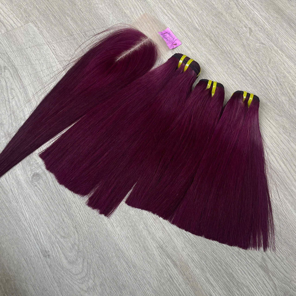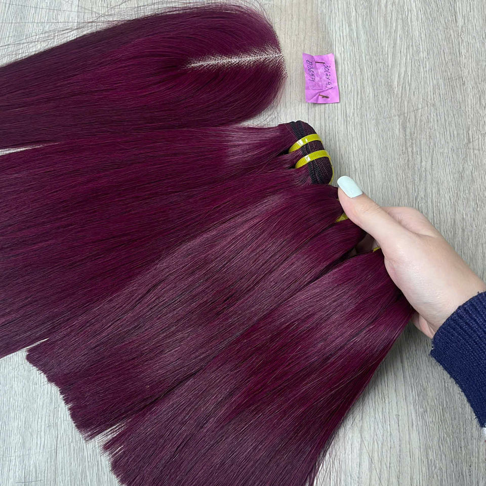 ผมเวียดนามคุณภาพเยี่ยม ตรงเรียบสีแดงเบอร์กันดีเข้ม เงางาม แบบทอสองชั้นด้วยเครื่องจักร