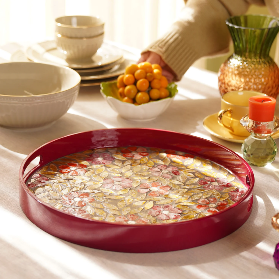ถาดเสิร์ฟแลคเกอร์ทรงกลมที่ทันสมัยพร้อมหอยมุก