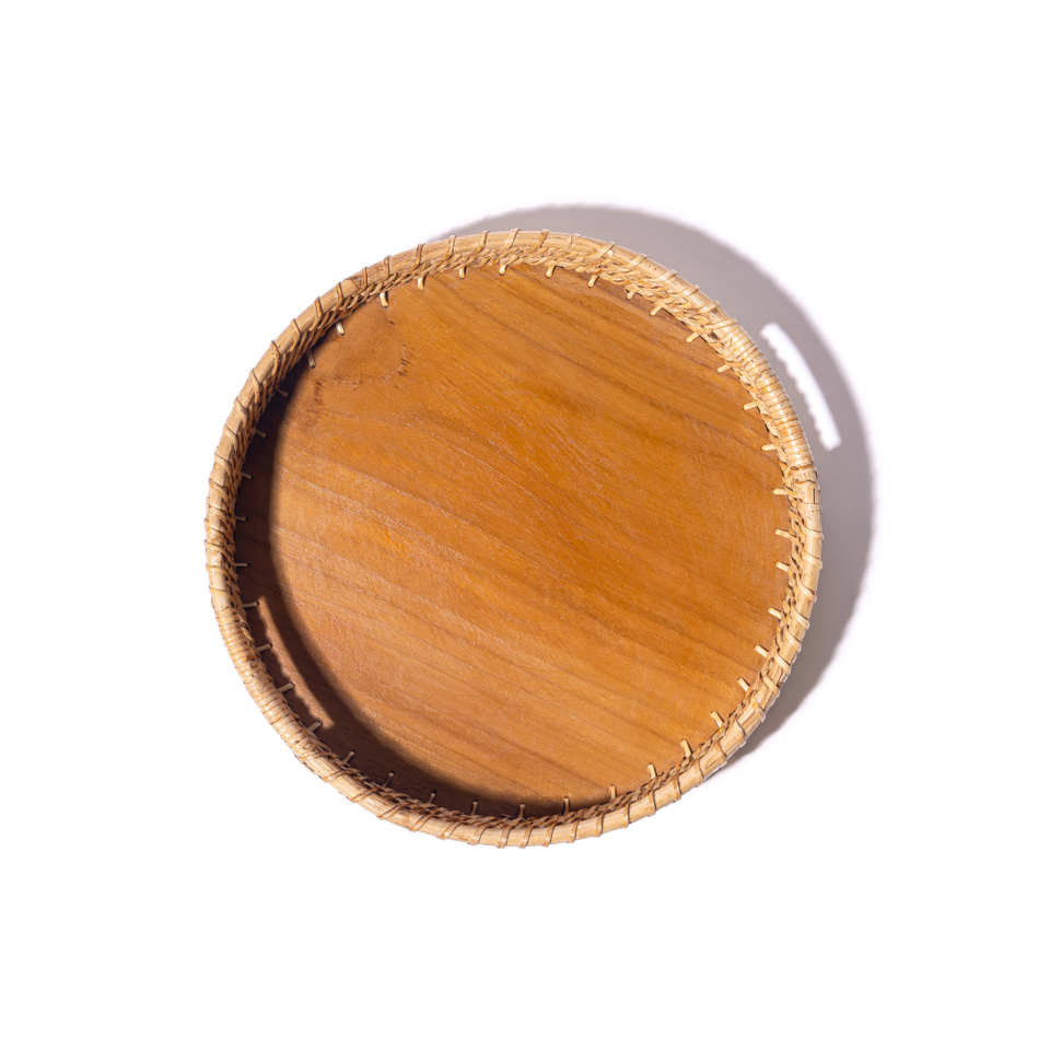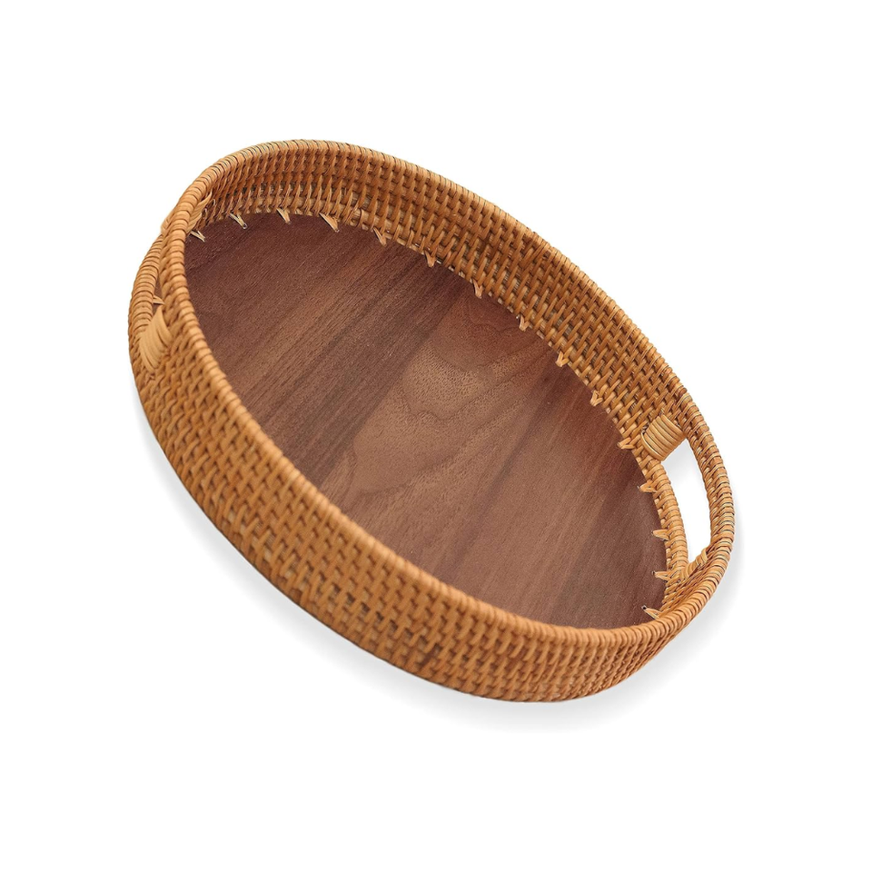 ถาดเสิร์ฟพร้อมฐานไม้รูปทรงกลมทำด้วยมือทำจากหวายธรรมชาติเวียดนาม