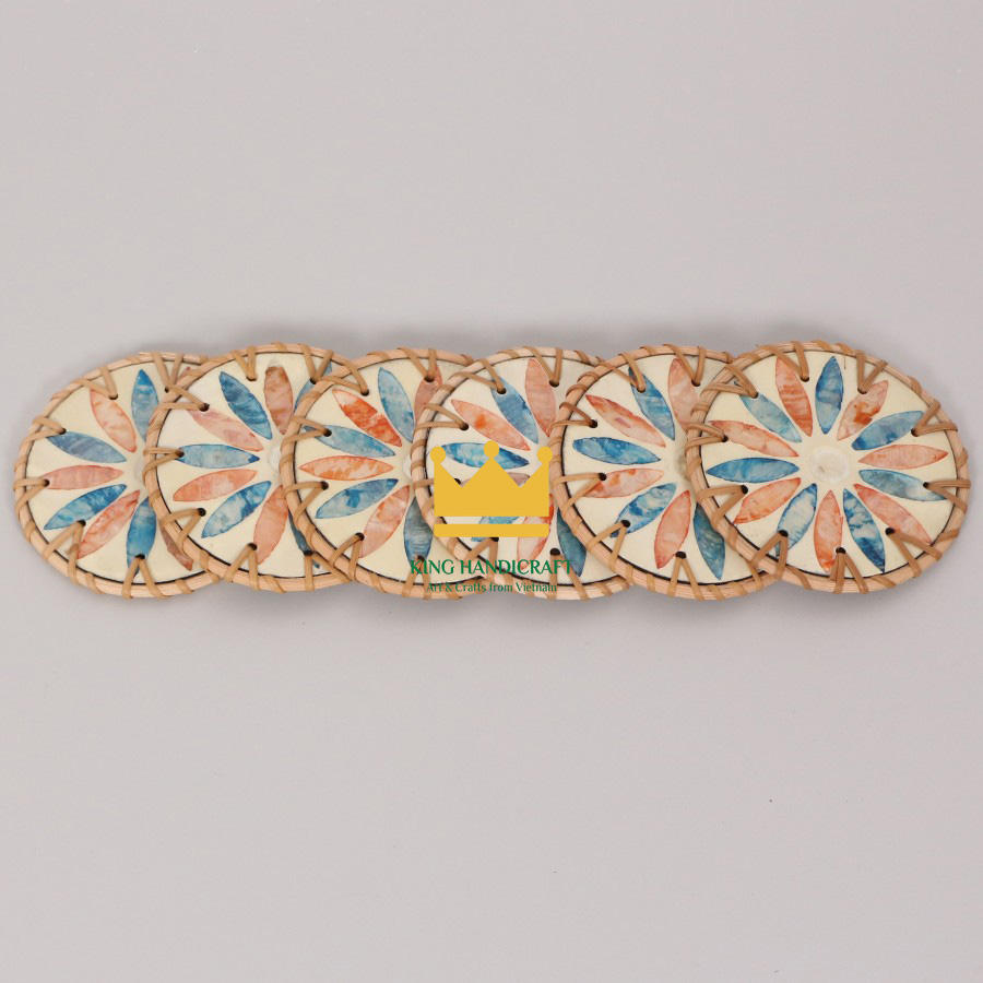 ที่รองแก้วหวายและเซรามิกแบบฝังสำหรับใช้ในบ้านชุดน้ำชาและการจัดวางโต๊ะแบบชนบทที่รองแก้วทอมือจากเวียดนาม
