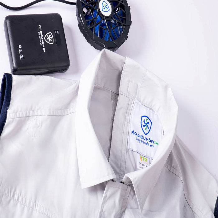 ผู้ผลิตเวียดนามจัดจำหน่ายโดยตรง เสื้อเชิ้ต SK แบรนด์ลำลอง ผ้าโพลีเอสเตอร์/คอตตอน ระบายอากาศ ป้องกันความร้อน พร้อมพัดลมในตัว