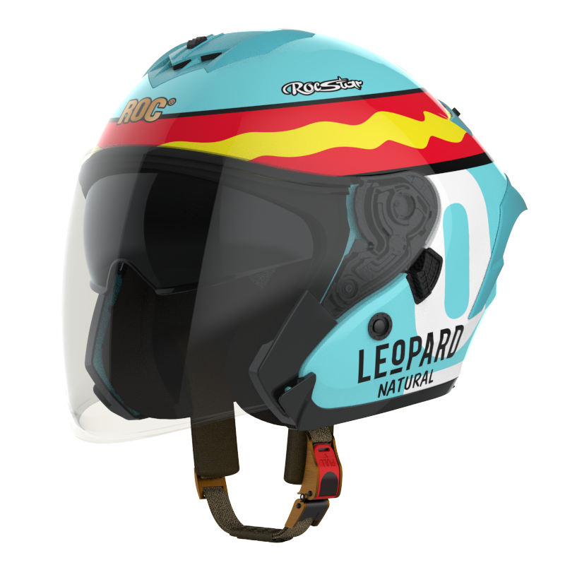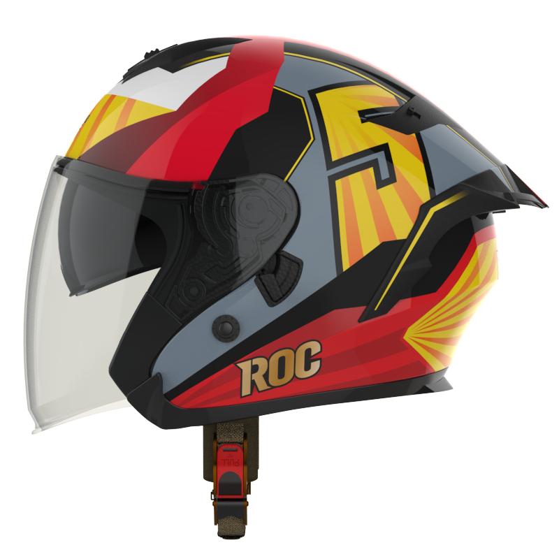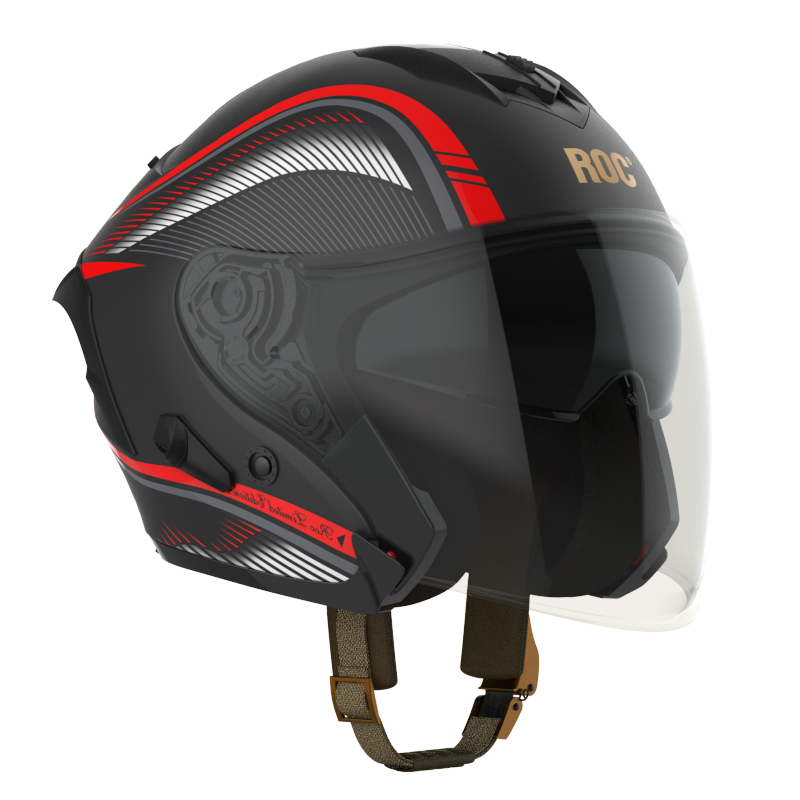 หมวกกันน็อคแบบเปิดหน้า ROC R09 ผลิตโดยผู้ผลิตเวียดนาม (OEM) โครงสร้างแข็งแรงด้วยวัสดุ ABS+EPS พร้อมแผ่นบังแดดสองชั้น ได้รับมาตรฐาน DOT ระบบปิดแบบปลดเร็ว