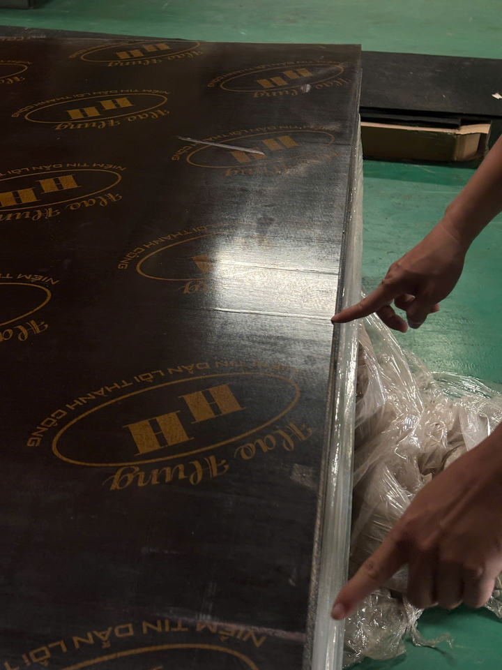 ไม้อัดฟิล์มหนาพิเศษ E1 ผลิตในเวียดนาม สีน้ำตาล-ดำ แกนไม้สน เป็นมิตรกับสิ่งแวดล้อม ใช้ซ้ำได้ 6-8 ครั้ง