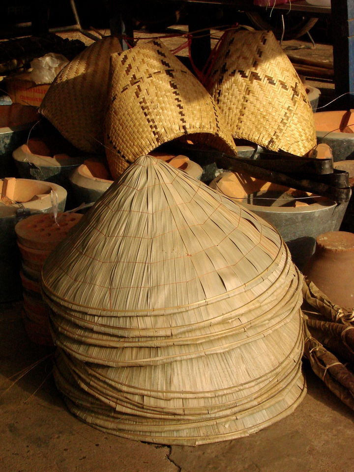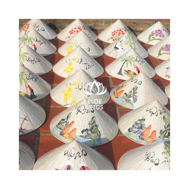หมวกทรงกรวยที่ทำด้วยมือจากใบปาล์มธรรมชาติของเวียดนามดีไซน์ทนทาน