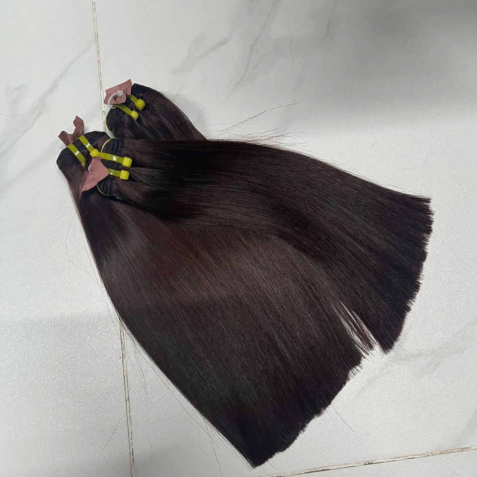 มัดผมมนุษย์ดิบจากเวียดนามผมตรงกระดูกพื้นผิวตรงสีน้ำตาลคุณภาพหรูหรา