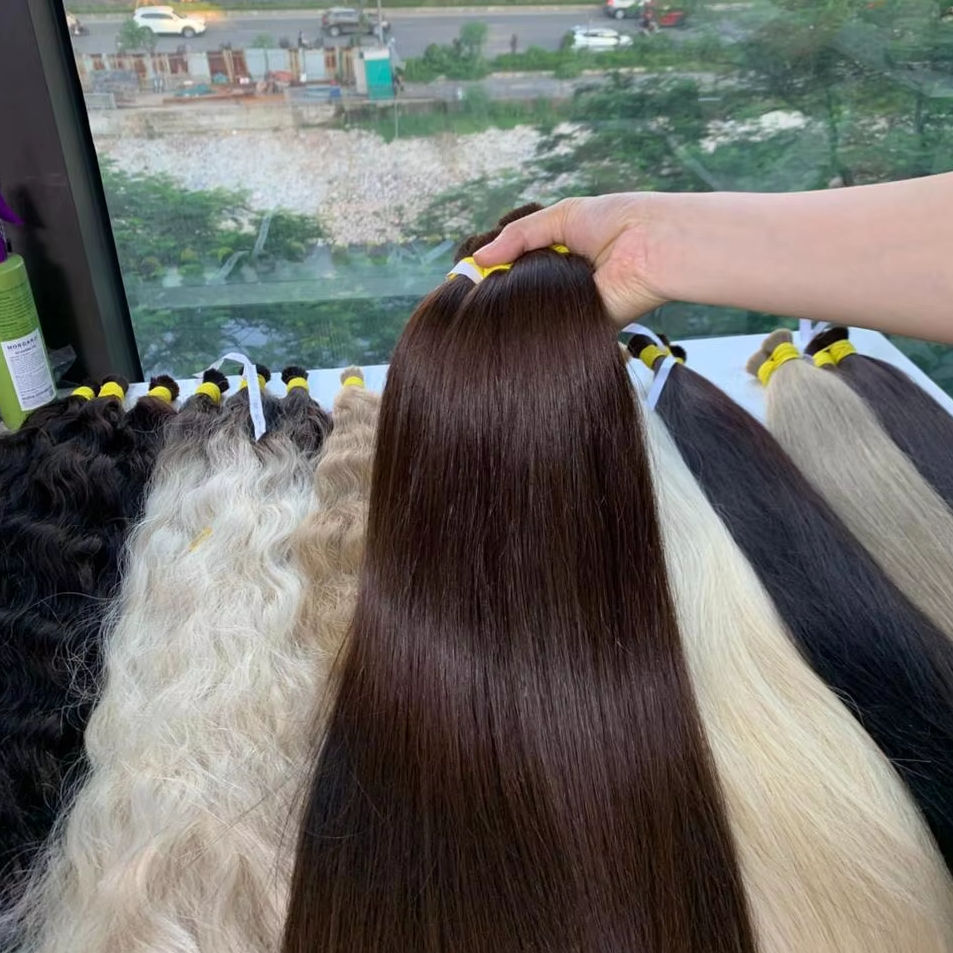 ผมต่อของมนุษย์ดิบเวียดนามแบบตรงสีน้ำตาลเข้มสินค้าโรงงานขายส่งระดับพรีเมียม