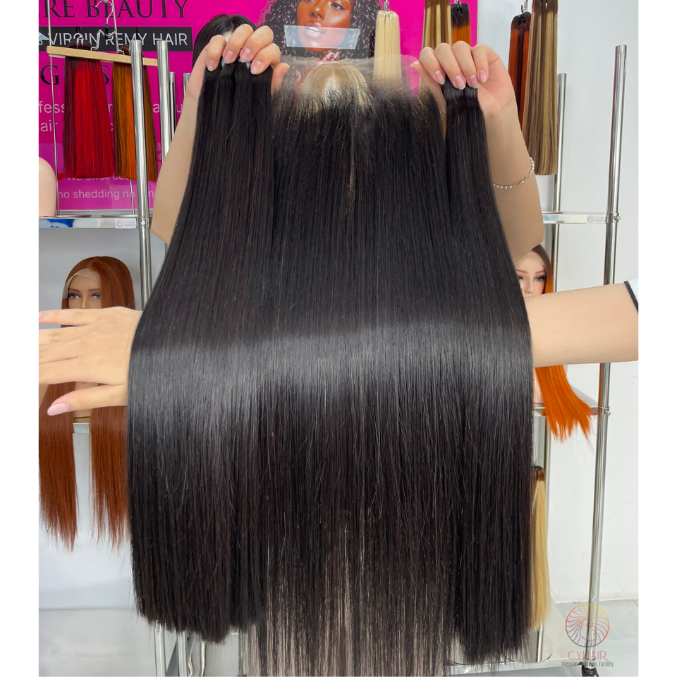 ผมเวียดนามแท้ 100% ไม่ผ่านการแปรรูป แบบทอสีธรรมชาติ ผมตรงสลวย แบบ Double Drawn เย็บด้วยเครื่องจักร แบบ Double Weft สำหรับต่อผม