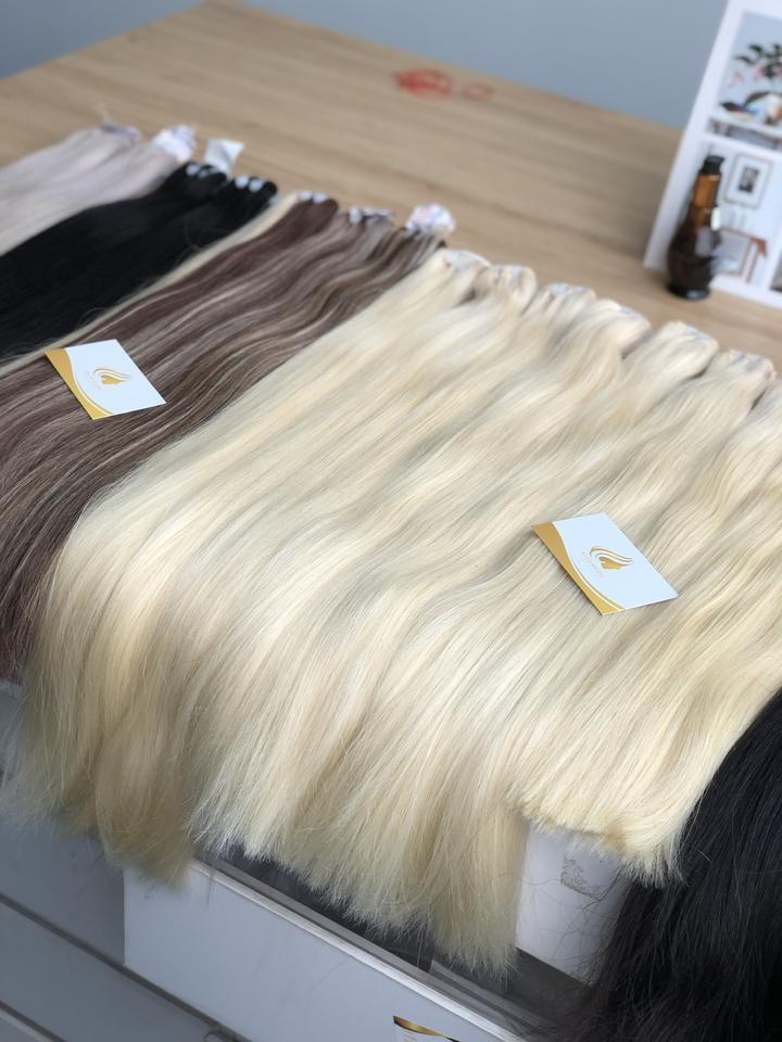 ผมเวียดนามแท้แบบ Remy ตัดจากผู้บริจาคคนเดียว หนังกำพร้าผมยังอยู่ครบ ปลายผมหนา ตรงธรรมชาติ หนาเป็นพิเศษ แบบ Super Double Drawn ติดด้วยวิธี Skin Weft ด้วยเครื่องจักร