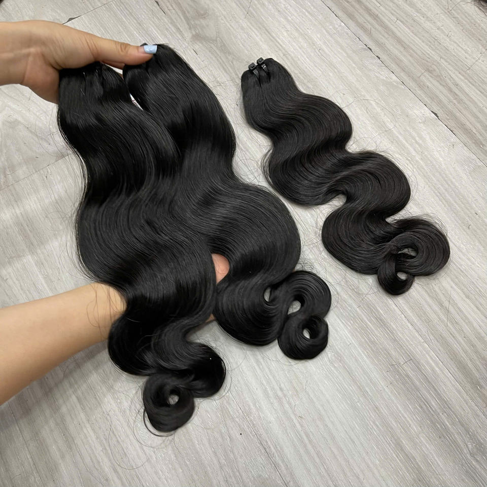 ผมเวียดนามแบบสตีมบอดี้เวฟ สีดำธรรมชาติ ยาว 24 นิ้ว แบบดับเบิ้ลดรอน ปลายหนา ขายส่ง พร้อมส่ง