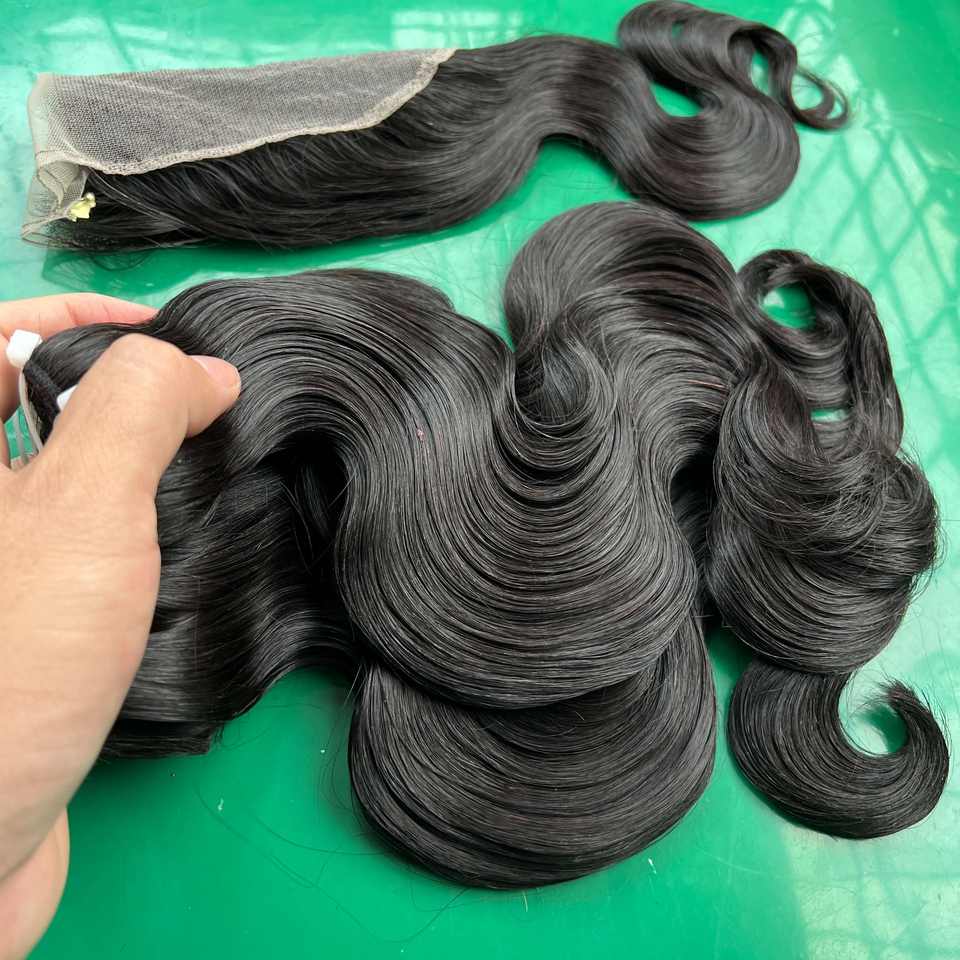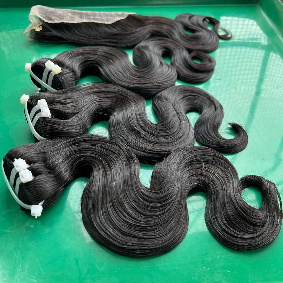 ผมเวียดนามแท้ เกรดพรีเมียม คิวติเคิลเรียงเส้นอย่างดี เงางาม คุณภาพสูง สีดำ แบบลอนบอดี้เวฟ ทอแบบมัชชีนดับเบิ้ลดรอน น้ำหนัก 100 กรัม