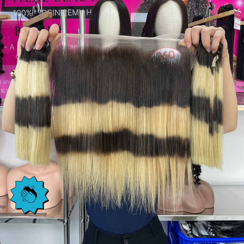 ผมต่อเวียดนามแท้ เกรด Remy แบบ Double Drawn แบบ Raw Bundles ผมตรงธรรมชาติ คุณภาพสูง 100 กรัม พร้อม Lace Closure