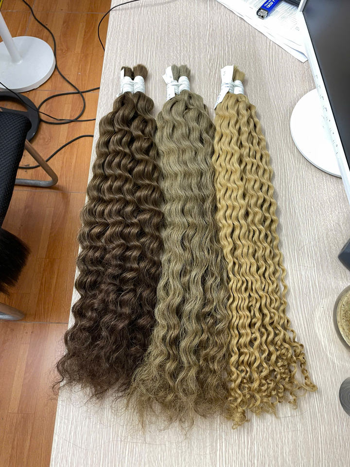 ผมต่อเวียดนามแท้แบบเวอร์จิ้นเรมี่ แบบม้วนสไตล์ฝรั่งเศส น้ำหนัก 100 กรัม สีบลอนด์ ผมแท้ 100%