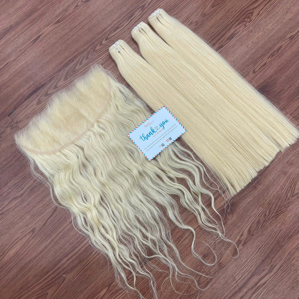 Vietnamese color weft hair Blonde color #613 double weft Double drawn straight 100% Raw human hair extension