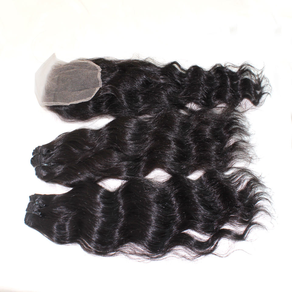 วิกผมต่อผมสีธรรมชาติ HD สำหรับสวิส5x5ของเวียดนามผมเป็นมัดผมตรงสไตล์คลื่นลึกขนาด10 "-40"