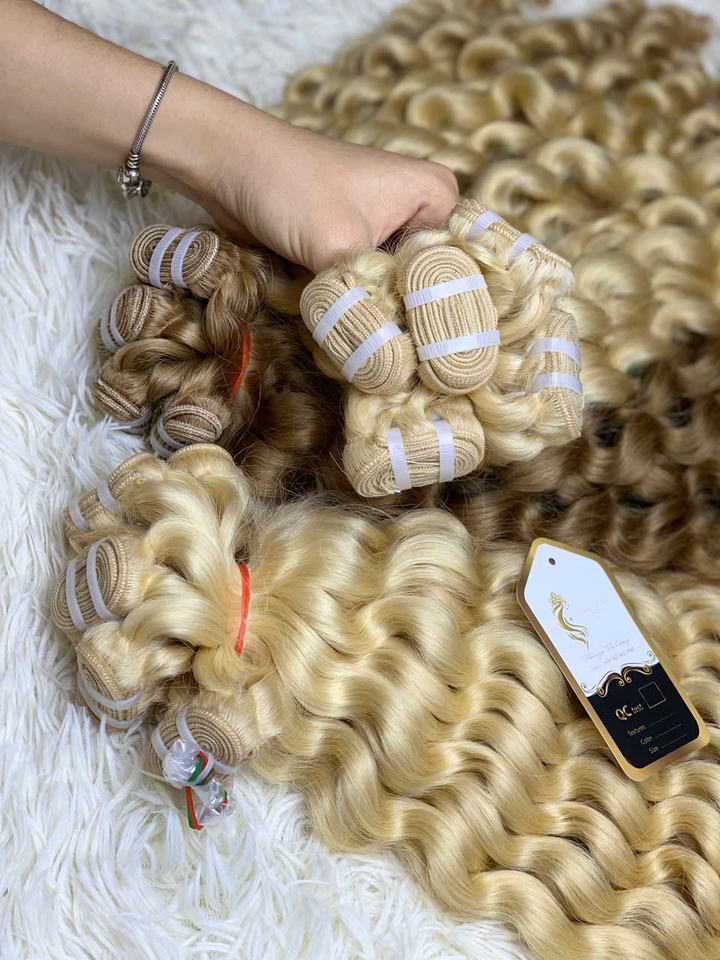 ผมคนหยิกเป็นลอนคลื่นขนาดเล็กจากเวียดนามผมคน100ผมนุ่มเงางามเนื้อเรียบเนียนปลายหนาไม่พันกัน
