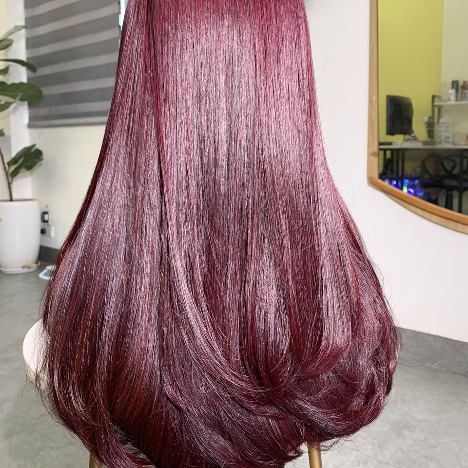 เวียดนามแฮร์ลักซ์ชัวรี่ ผลิตภัณฑ์ขายดี คุณภาพสูง ผมแท้เวอร์จิ้นเรมี่ ต่อผมแบบไหมตรงสีเบอร์กันดี แบบเส้นเดียว ขนาด 8"-32"