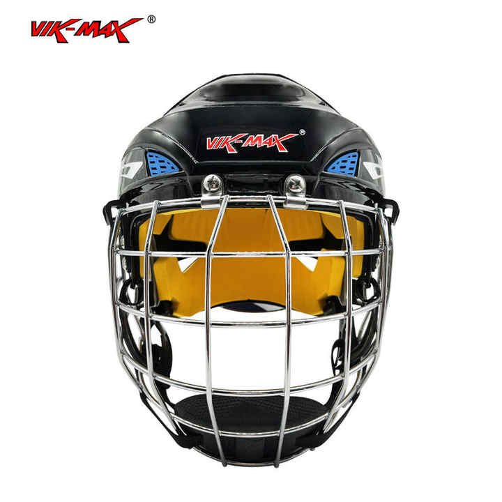 หมวกกันน็อค Vik-Max Dual Sport สีดำ พร้อมหน้ากากสแตนเลส สำหรับนักกีฬาฮอกกี้สนามและฮอกกี้น้ำแข็ง