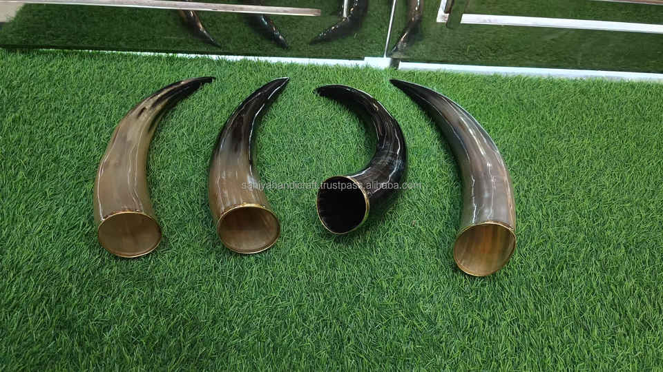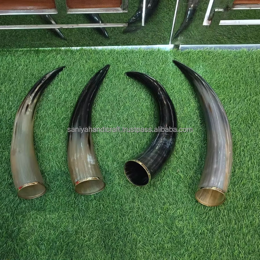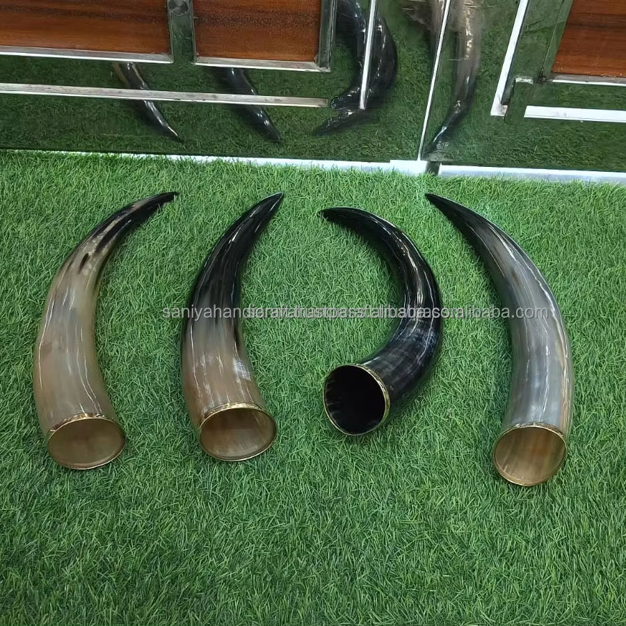 ไวกิ้งฮอร์นดื่มทำด้วยมือแท้ไม้แข็งยืนแกะสลักมือสไตล์สัตว์งานฝีมือธรรมชาติขัดเงาใช้หัตถกรรม