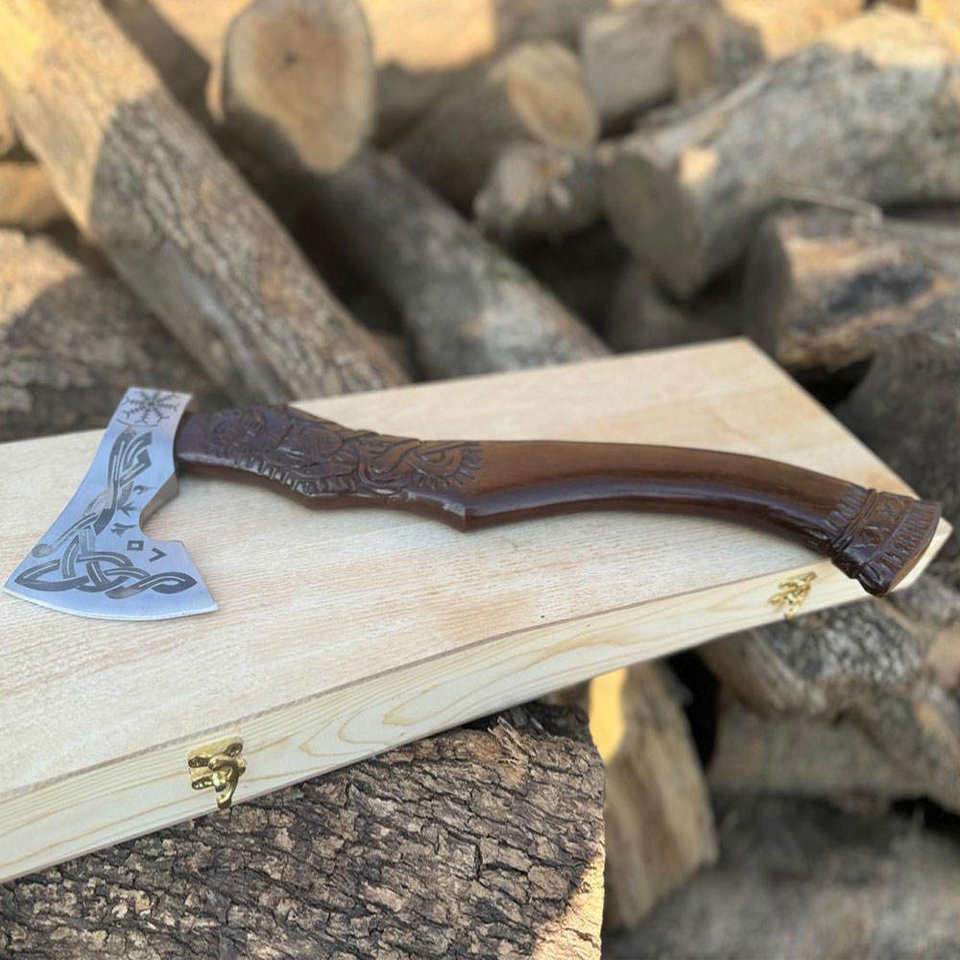 ขวานไวกิ้ง DIY งานแฮนด์เมดสไตล์นอร์ดิก ใบมีดเหล็กคาร์บอน ด้ามไม้ สำหรับตั้งแคมป์ ล่าสัตว์ ผจญภัยกลางแจ้ง ปรับแต่งได้ คุณภาพสูง