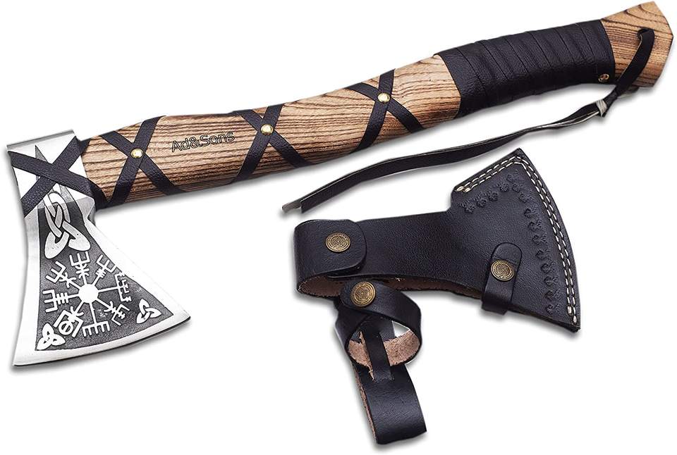 ขวานไวกิ้งทำด้วยมือเกรดอุตสาหกรรมพร้อมหัวเหล็กคาร์บอนสูงและที่จับเหล็กคาร์บอนรับประกัน3ปีสำหรับ DIY กลางแจ้ง