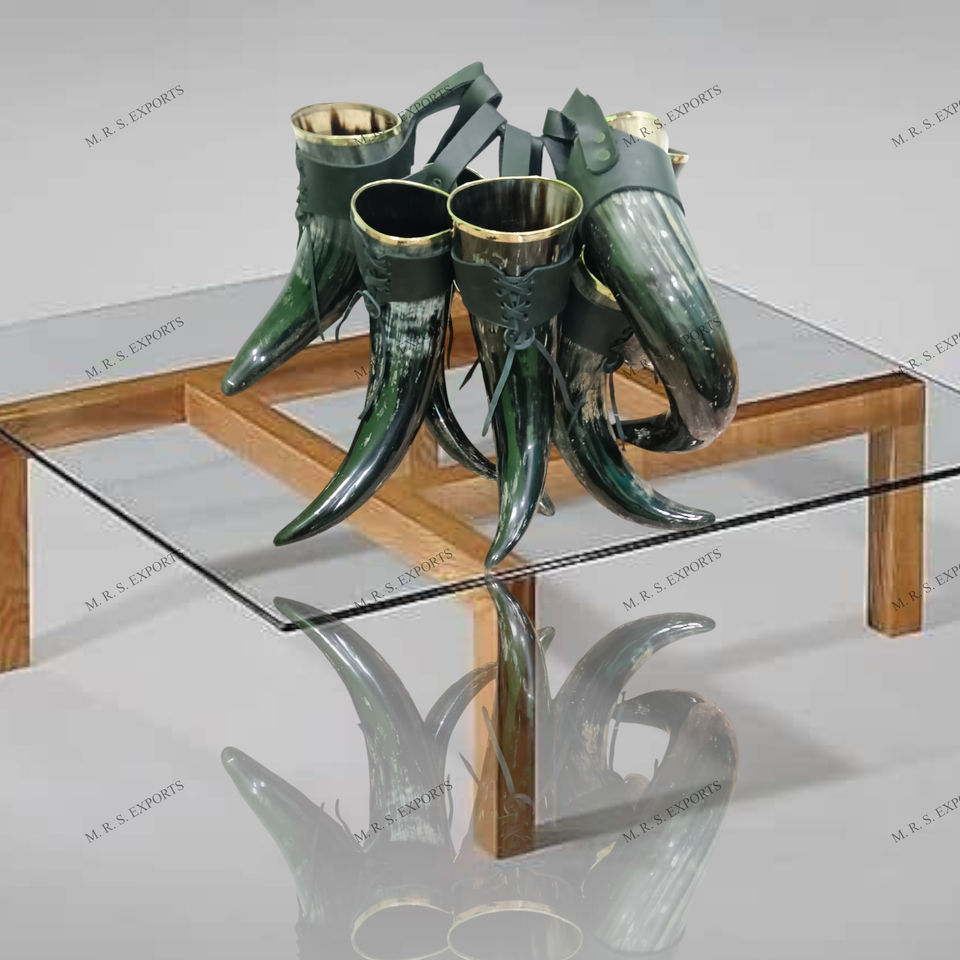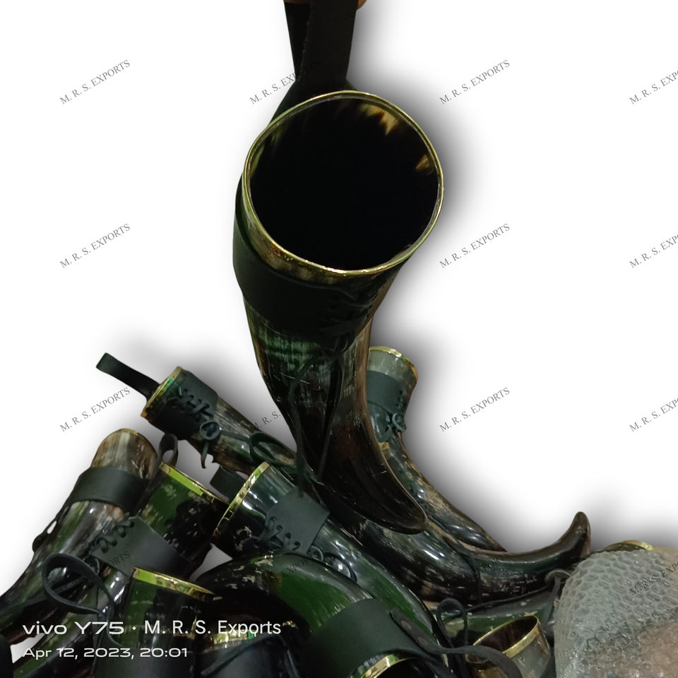 500ml Drinking Horns with Brass Rims and Leather Holsters