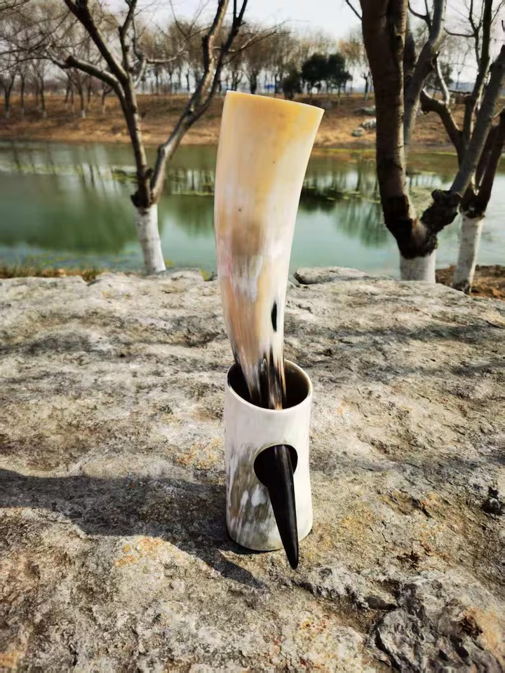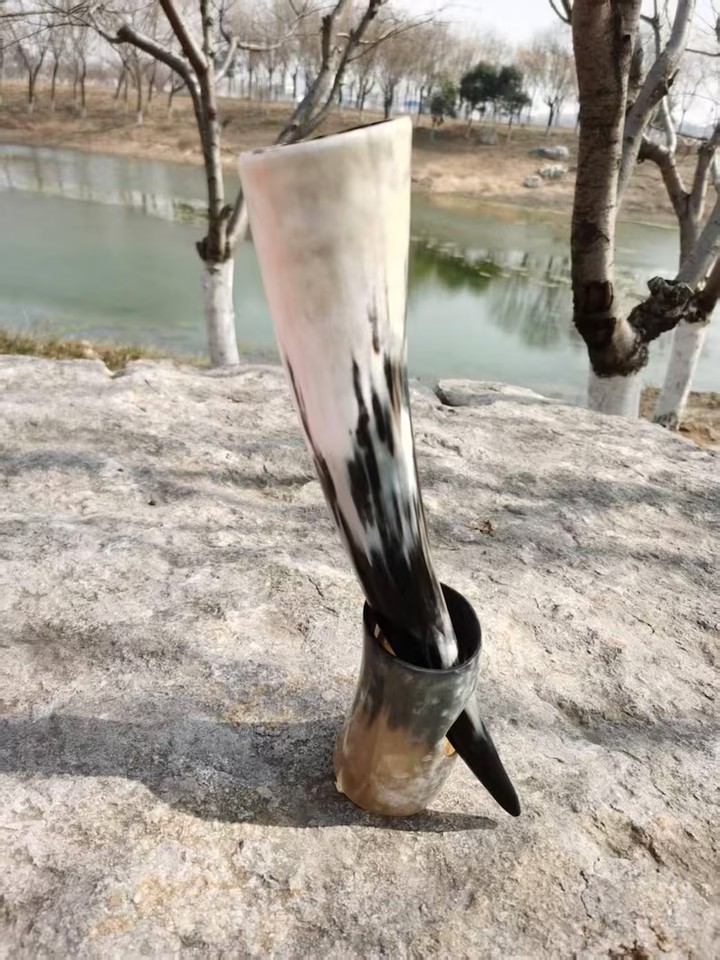 ฮอร์นดื่มไวกิ้งแก้วเบียร์ไวน์มธุรสยุคกลางทำมือแตรวัวตั้งทำเครื่องดื่มฮอร์นจากงานฝีมือเสี้ยว