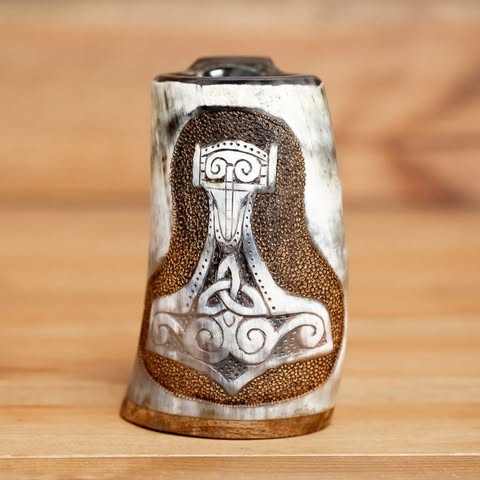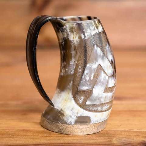 แก้วน้ำเขาสัตว์ไวกิ้งขัดเงา เป็นมิตรกับสิ่งแวดล้อม ทำจากเขาสัตว์ธรรมชาติ ดีไซน์สไตล์ยุคกลาง พร้อมด้ามจับที่สมบูรณ์แบบ