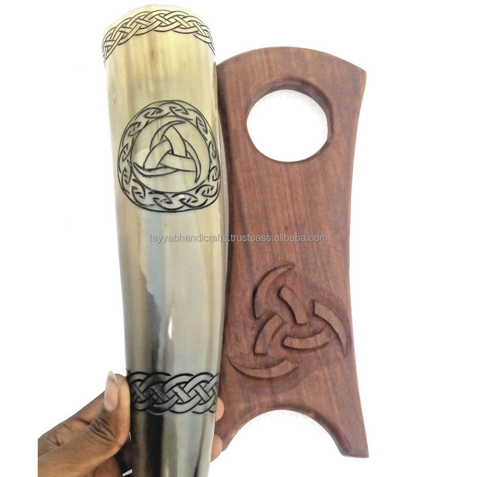 ฮอร์นเครื่องดื่มไวกิ้งพร้อมงานแกะสลักสำหรับเบียร์ไวน์น้ำวัว/ควายขัดฮอร์นสำหรับงานแต่งงานที่บ้าน