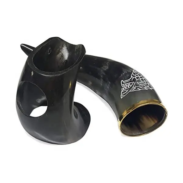 ฮอร์นสำหรับดื่มไวกิ้งพร้อมขาตั้งแตรยุคกลางคลาสสิกแกะสลักวัสดุอินทรีย์เกรดอาหารปลอดภัย