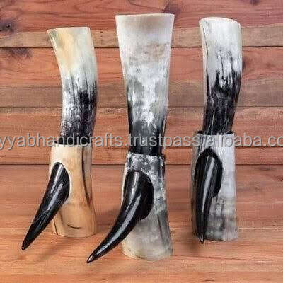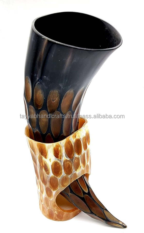 แตรสำหรับดื่มแบบไวกิ้งแกะสลักด้วยมือพร้อมโลโก้ของแท้สำหรับอาหารปลอดภัย