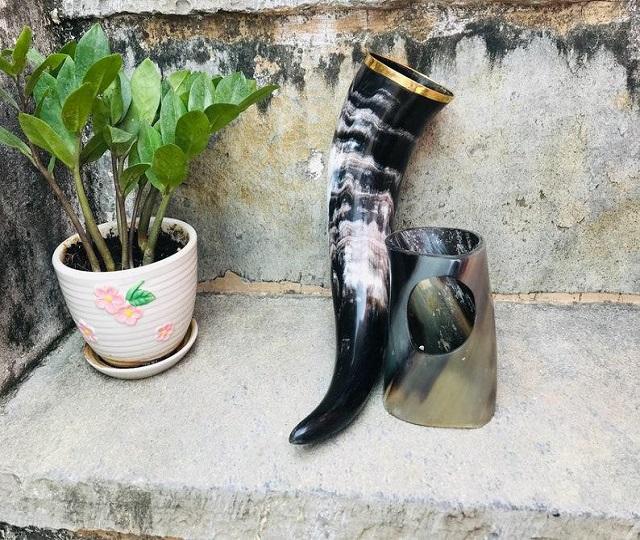 ฮอร์นดื่มไวกิ้งพร้อมขาตั้งเขาทำจากเขาควายผู้ผลิตและผู้ส่งออกจากอินเดีย F S ต่างประเทศ