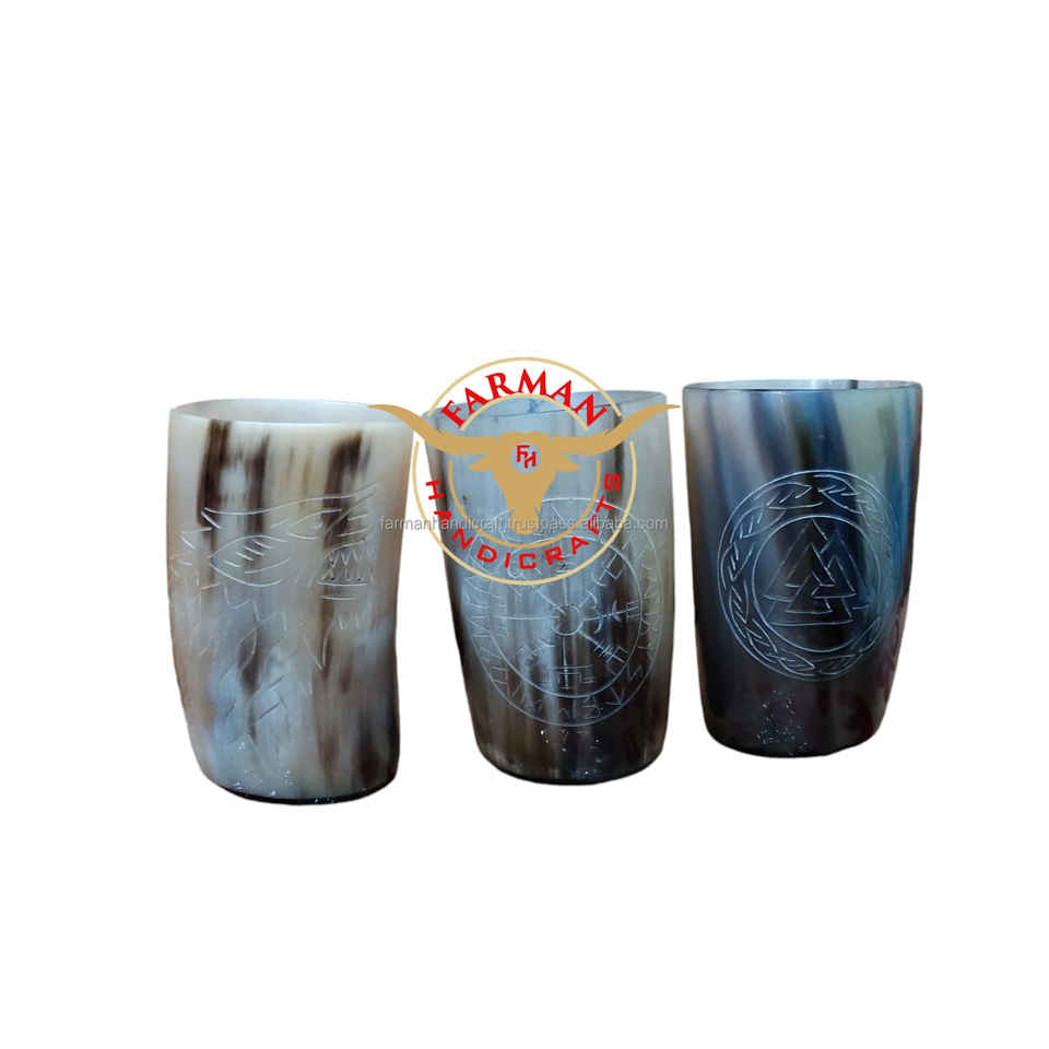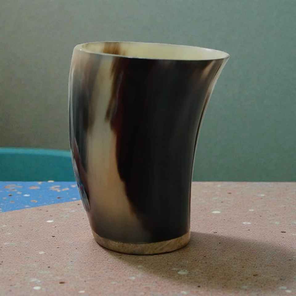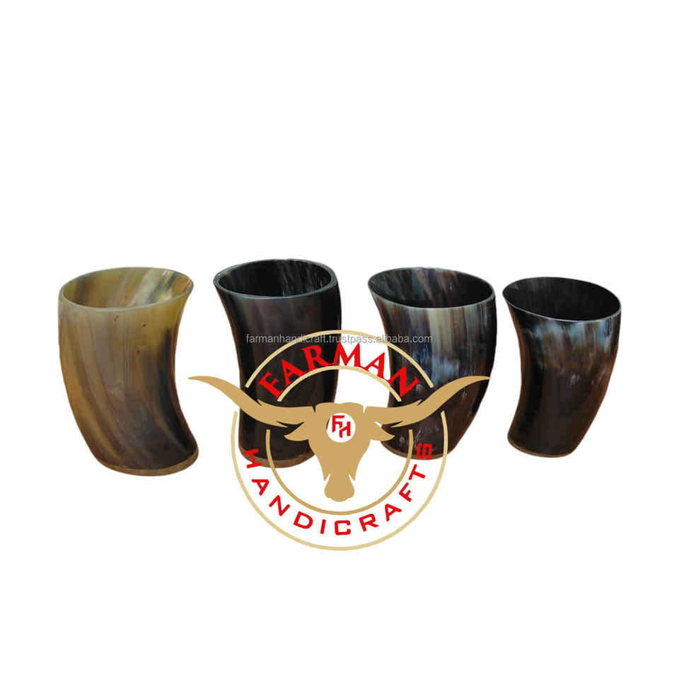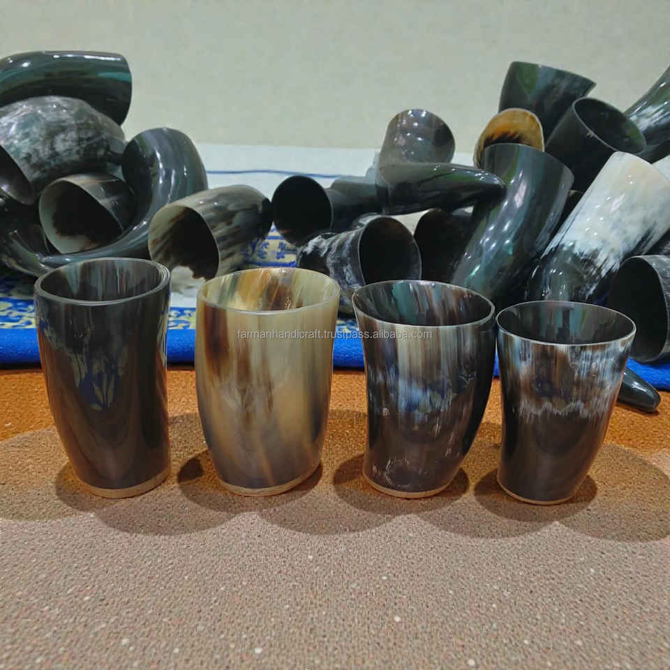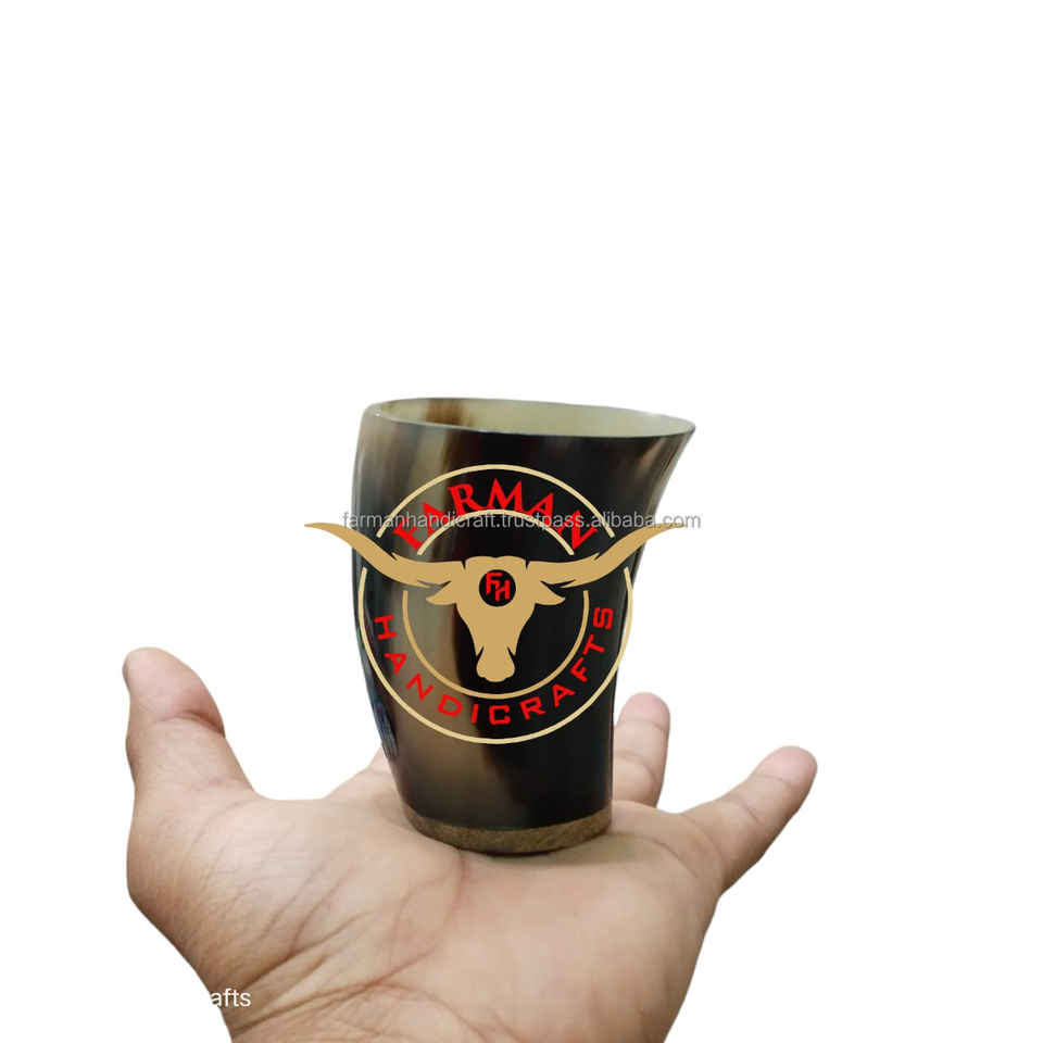 แก้วน้ำวัสดุเขาสัตว์ขนาดเล็กขอบทองเหลือง งานแฮนด์เมด สำหรับแคมป์ปิ้ง เป็นมิตรกับสิ่งแวดล้อม ทนความร้อน บรรจุกล่อง