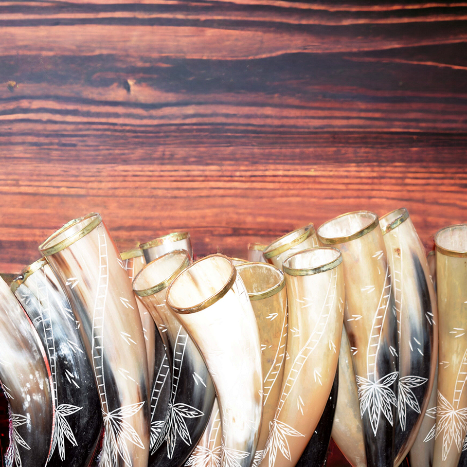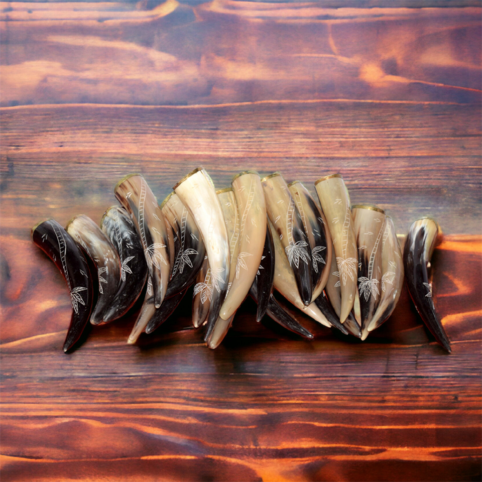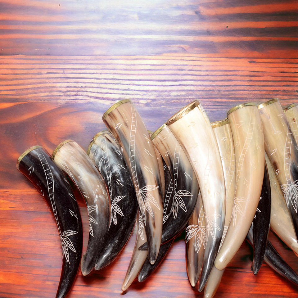 เขาสัตว์ทำมือสไตล์ไวกิ้งสำหรับดื่มในยุคกลาง ทนทาน งานฝีมือธรรมชาติ พร้อมเทคนิคการแกะสลัก เหมาะสำหรับคอสเพลย์ อัศวินในตำนาน ใช้กับอาหารได้
