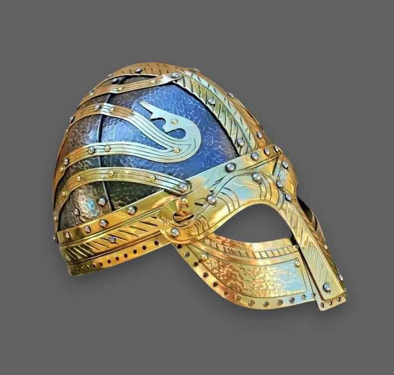 หมวกกันน็อคไวกิ้งหมวกเกราะปลอมแปลงมือหมวกกันน็อคนักรบนอร์สของแท้เหมาะสำหรับการฟื้นฟูและคอสเพลย์