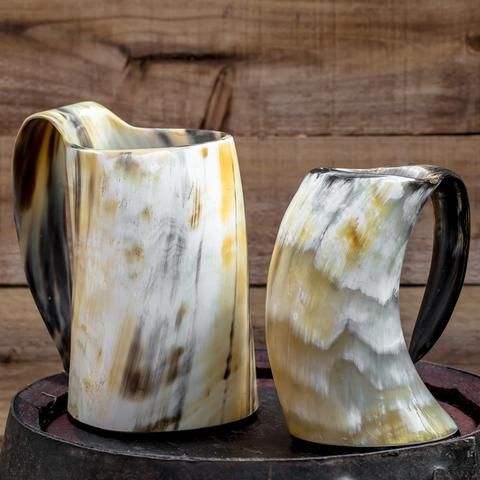 แก้วน้ำเขาสัตว์ไวกิ้ง แก้วดื่มสไตล์ยุคกลาง แก้วเบียร์ทำมือแกะสลัก ทนทาน เหมาะสำหรับงานปาร์ตี้ ร้านอาหาร วันหยุด และคนรัก