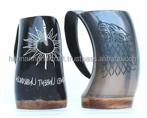 แก้วน้ำทรงแตรไวกิ้ง แกะสลักด้วยมือจากเขาสัตว์แท้ เป็นมิตรกับสิ่งแวดล้อม สไตล์เรือเดินสมุทร ขัดเงาอย่างดี เก็บอุณหภูมิเครื่องดื่มร้อน/เย็นได้