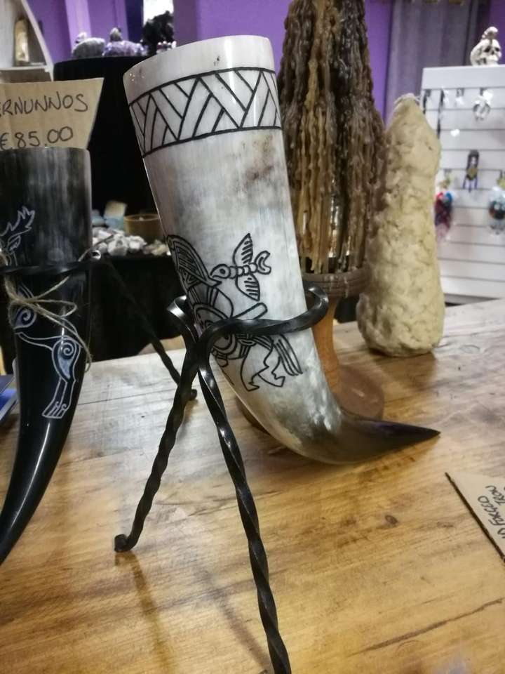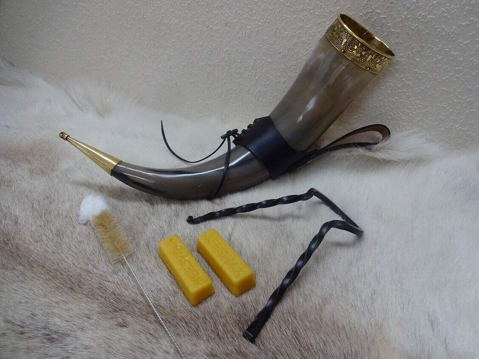 ขาตั้งเขาควายขัดเงาสไตล์สัตว์แบบไวกิ้งสำหรับวางเขาดื่มน้ำ ใช้สำหรับตกแต่งยุคกลาง