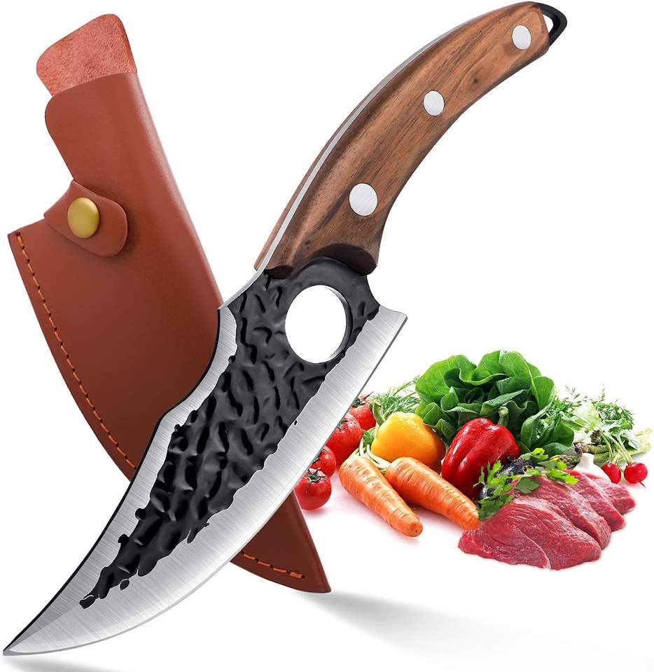 มีดไวกิ้งพร้อมปลอก มีดญี่ปุ่นตีขึ้นรูป มีดแล่เนื้อ สำหรับตั้งแคมป์ปิ้ง บาร์บีคิวกลางแจ้ง