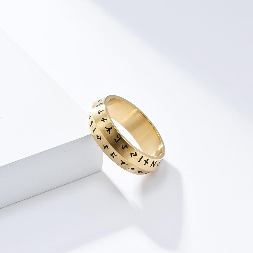 แหวนเหล็กไทเทเนียมลายไวกิ้งสำหรับผู้ชาย สวมใส่สบายๆ สีทอง สีดำ สีเงินโบราณ สีเหล็ก