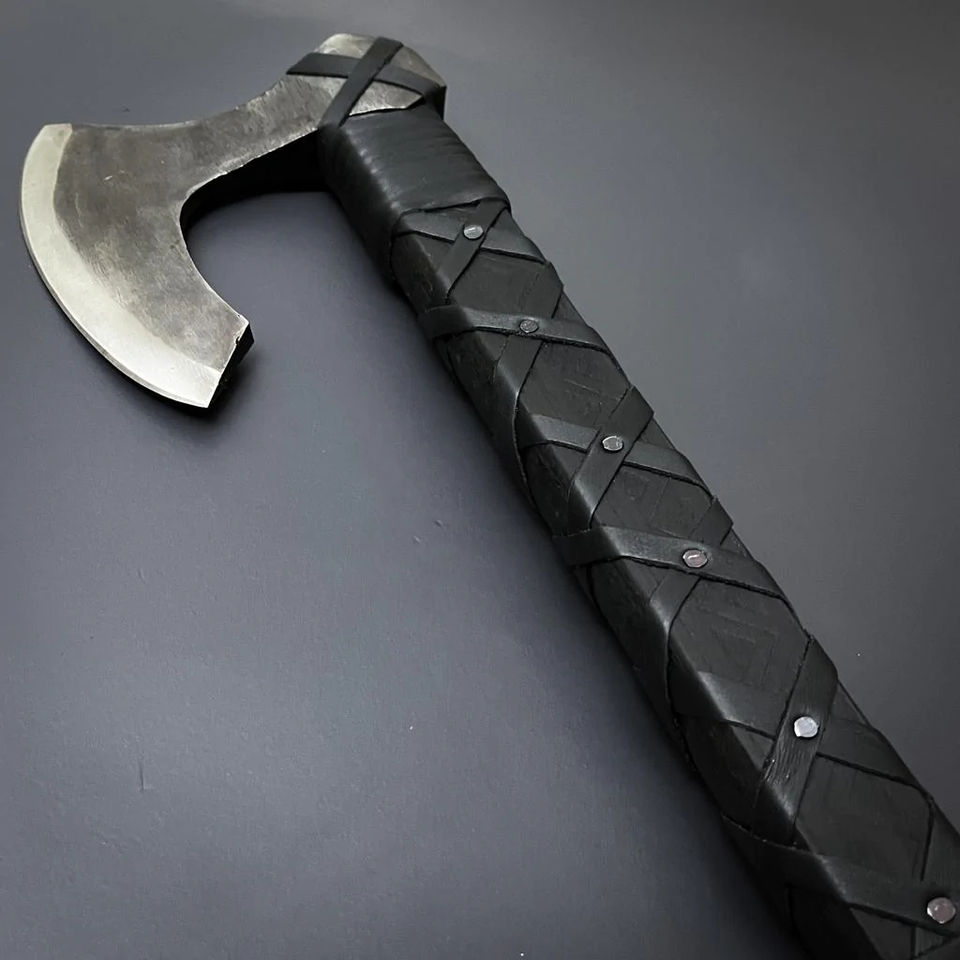 ขวานสไตล์ไวกิ้ง เครื่องมือกลางแจ้งแบบตีขึ้นรูป ขวานสไตล์นอร์ดิก เครื่องมือเหล็กตีขึ้นรูปด้วยมือ ขวานที่ได้แรงบันดาลใจจากไวกิ้ง ด้ามไม้ เครื่องมือกลางแจ้ง