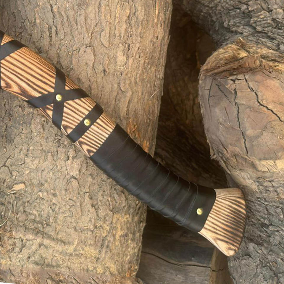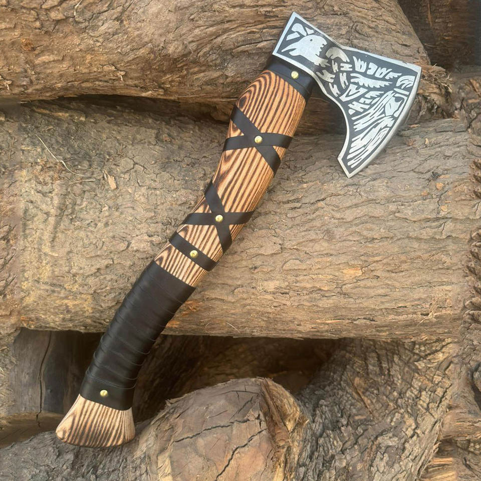 ขวานสไตล์ไวกิ้ง ดีไซน์นอร์ดิก ด้ามไม้ ใบมีดเหล็กคาร์บอน เครื่องมืออเนกประสงค์สำหรับตั้งแคมป์ เอาตัวรอดกลางแจ้ง ของตกแต่งสะสม
