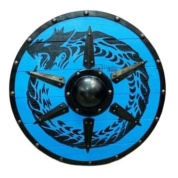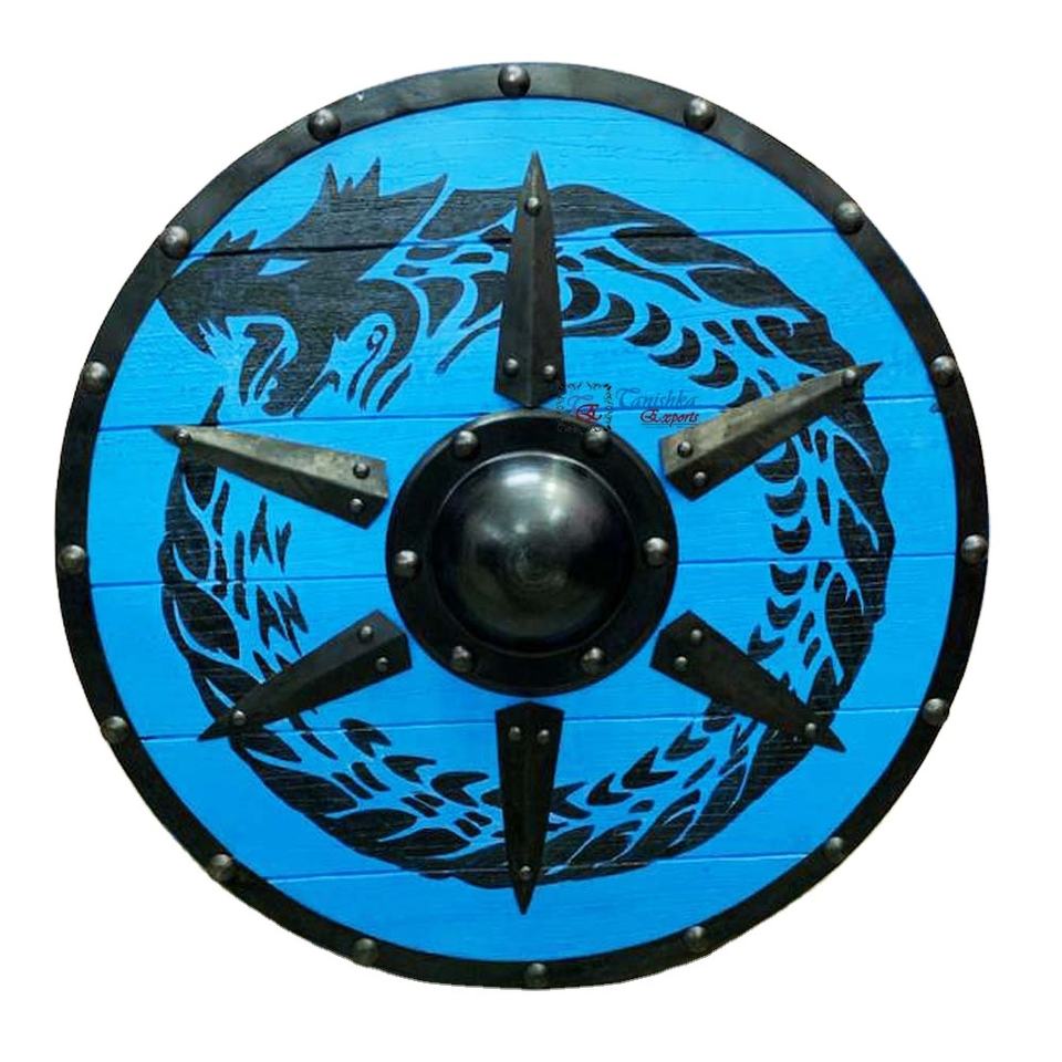Viking Wolf Viking Wooden Shield Medieval Round Wooden Shield Metal Crafts Halloween Costume Home Decor Wooden Shield