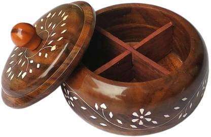 กล่องไม้ใส่ผลไม้แห้งขนาดใหญ่กล่องใส่อาหารกล่องใส่เครื่องเทศกล่องใส่4ช่องกล่องสีน้ำตาลของขวัญ DIY